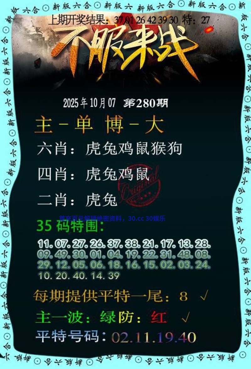 【不服来战网】升级公告:为了给彩民朋友提供更多精准资料,感谢所有彩民对本站大力支持和关注。因版面升级,资料发表的位置略有变动,请注意查看。同时声明:本站不收会员,没有任何会员电话,所有资料全部长期免费发表☛444526.com